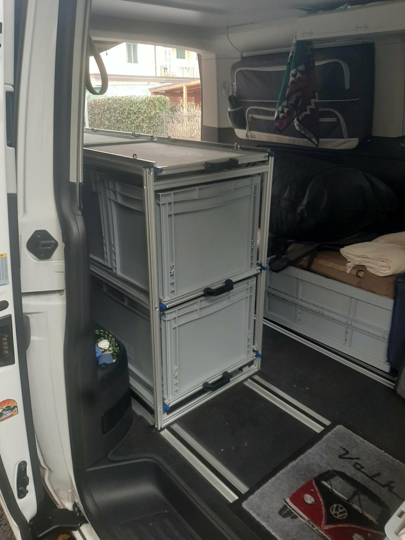 In questo progetto abbiamo ripensato lo spazio del Volkswagen California per renderlo più ordinato e sfruttabile, creando una configurazione funzionale e versatile pensata per viaggiare senza compromessi. L’obiettivo era semplice: avere tutto organizzato, ma anche raggiungibile sia dall’interno sia dall’esterno del veicolo, in base alle situazioni.